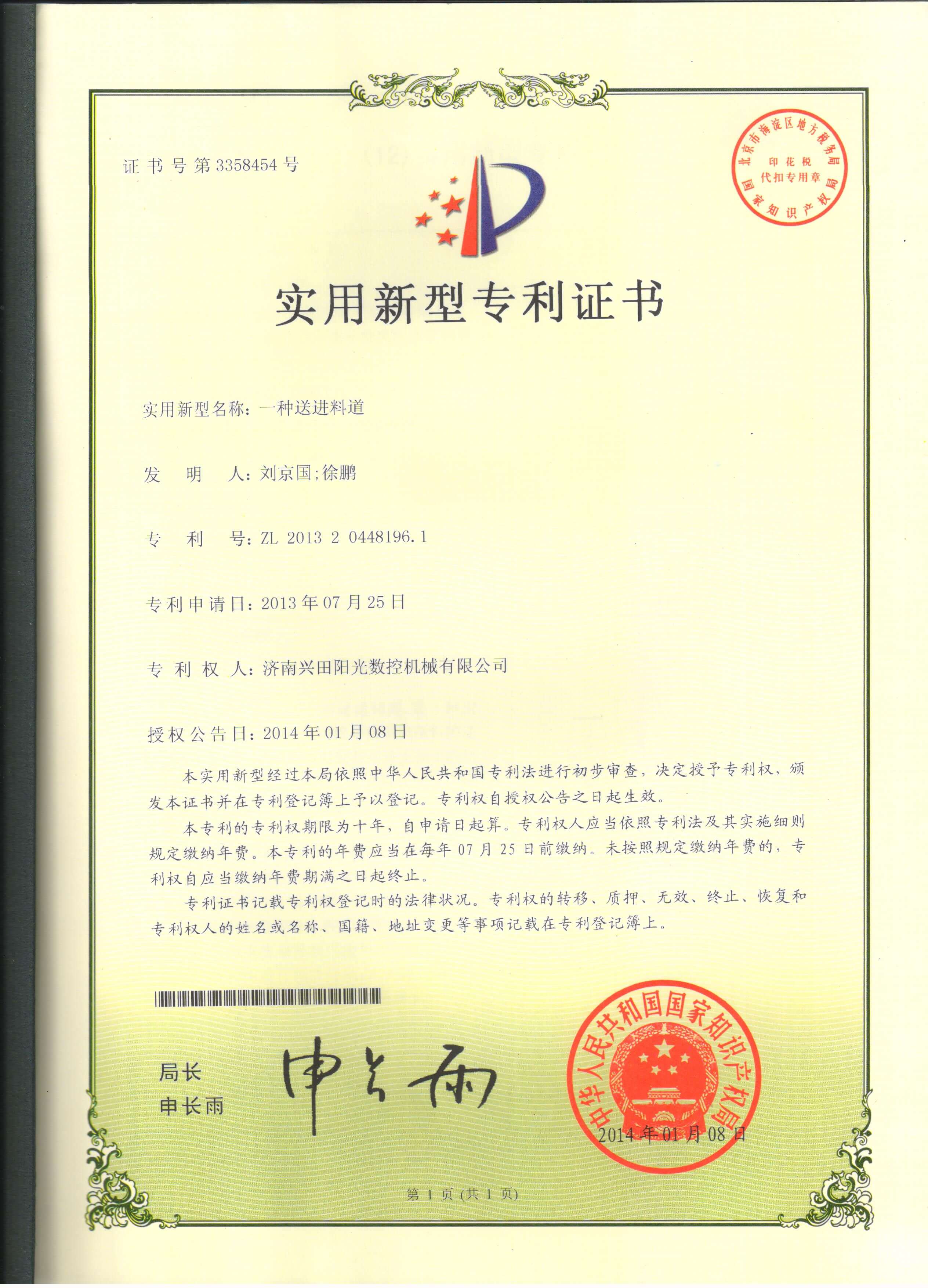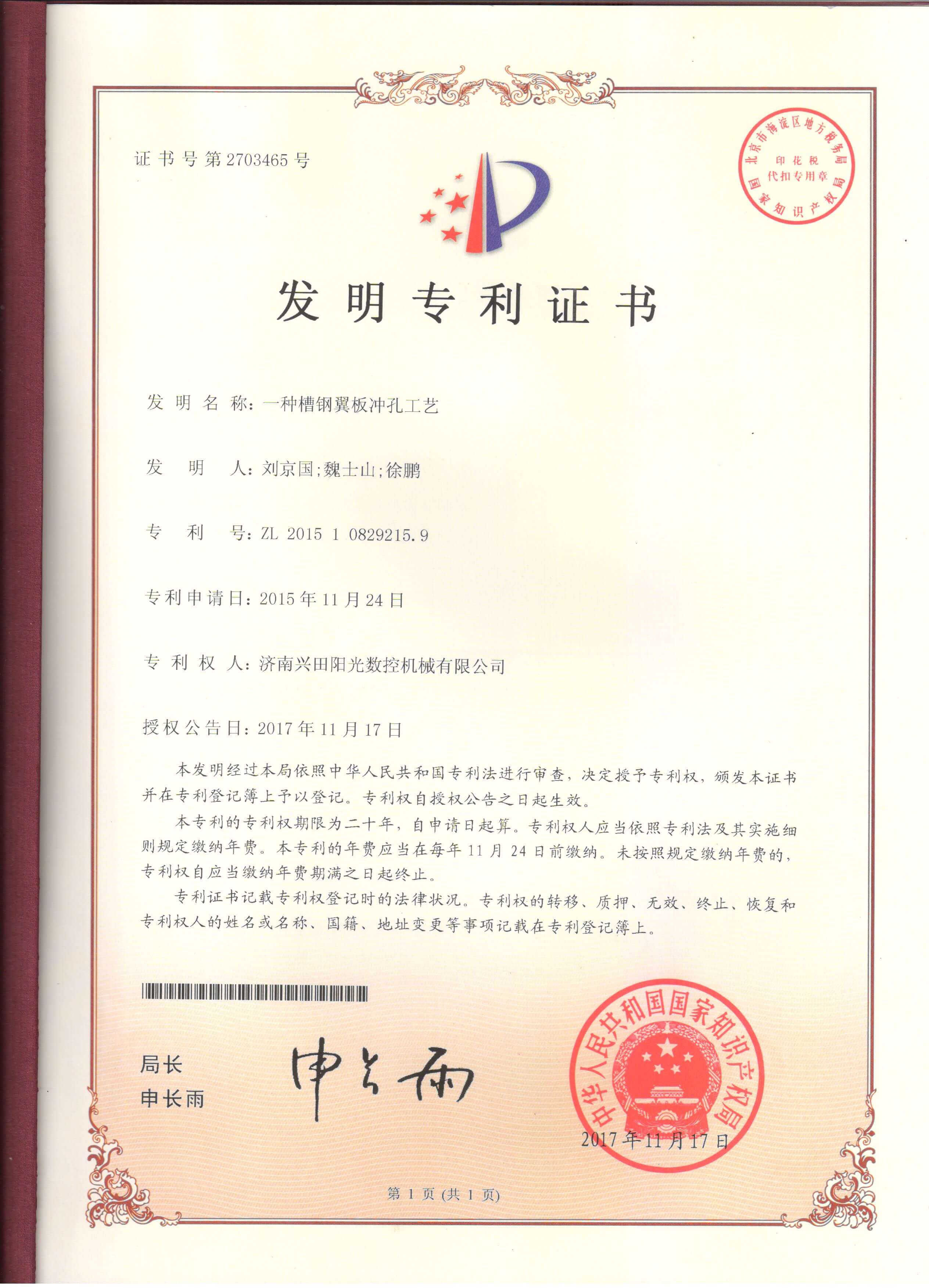 • 專利證書